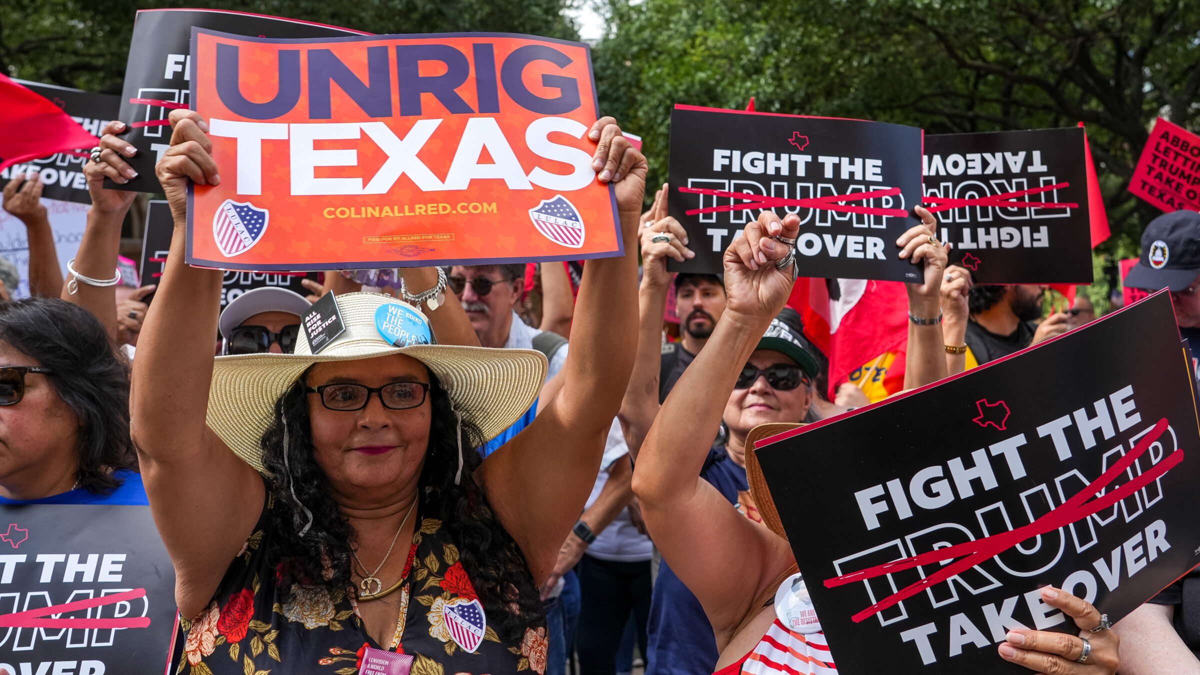 Rallygoers protest proposed mid-decade redistricting efforts in Texas, August 2025 (Aaron E. Martinez/Austin American-Statesman via Getty Images)