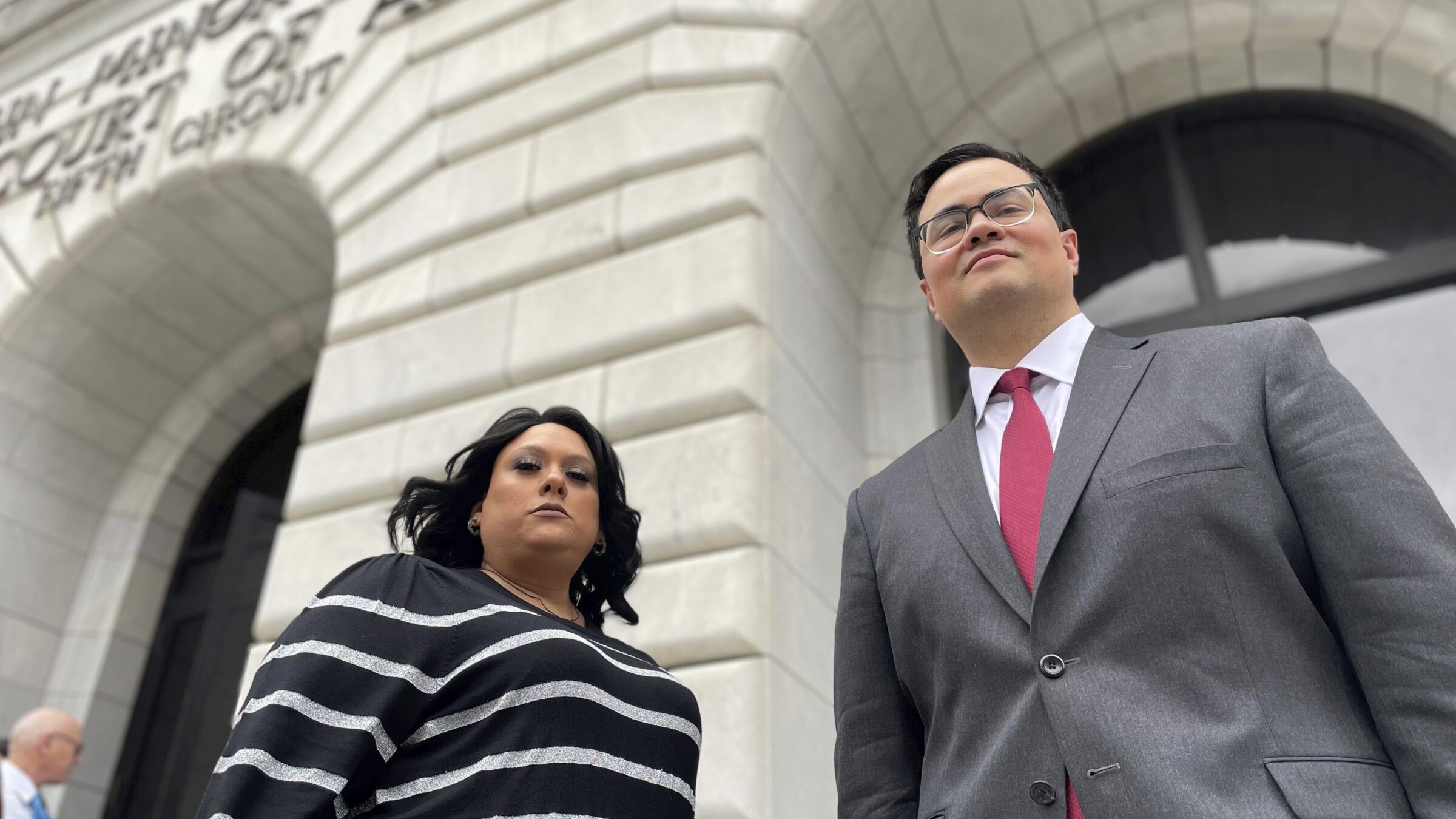 Priscilla Villarreal and her attorney outside the Fifth Circuit Court of Appeals, January 2023 (AP Photo/Kevin McGill, File)